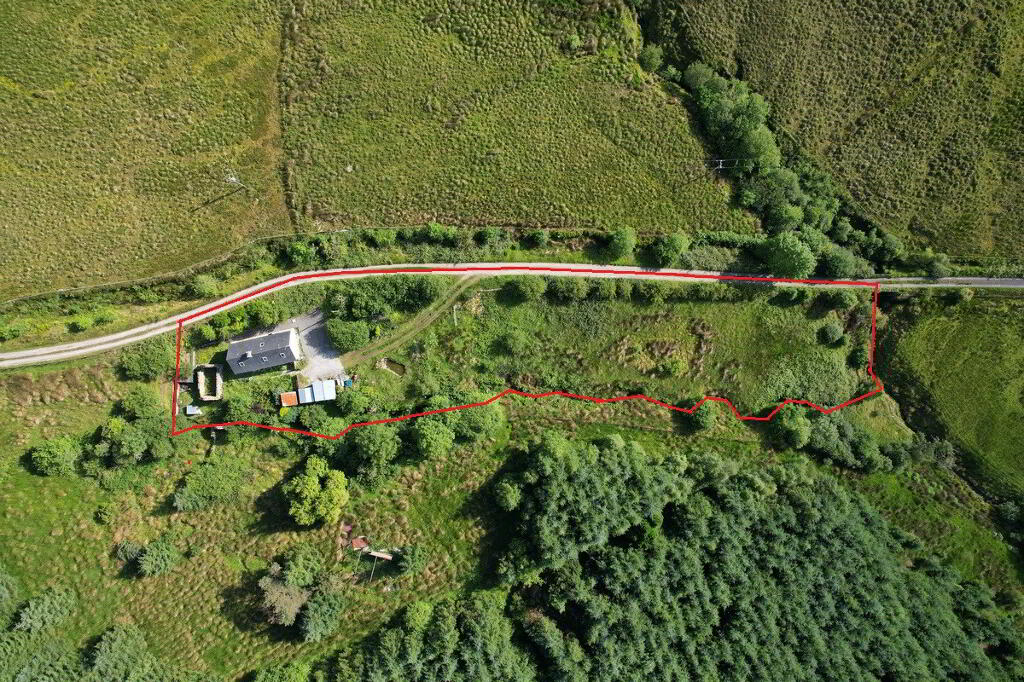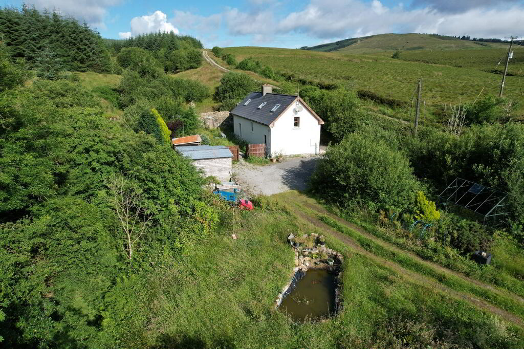 Comprising Freehold Folio CN22861F, the site extends to 1 acre & is accessed by a 400 metre private laneway from the L1019. The site is clearly bounded by the laneway, fencing & natural stream, containing; ample off street parking in the stoned yard, cottage garden (currently wild), large front garden, pond, pump house, kennel & shed. There is also the remains of an older stone cottage which could be renovated or connected to the dwelling.