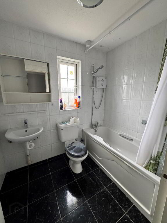 Bathroom: (2m x 2.1m) Bath with overhead electric shower, Wc WHB Tiled Floor