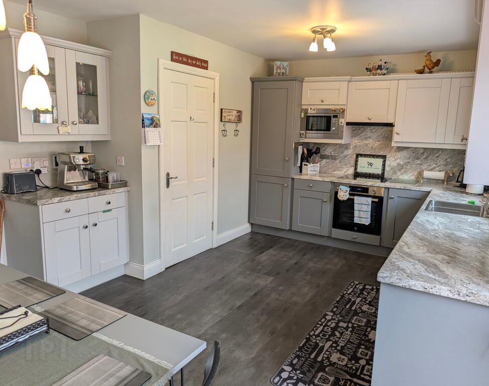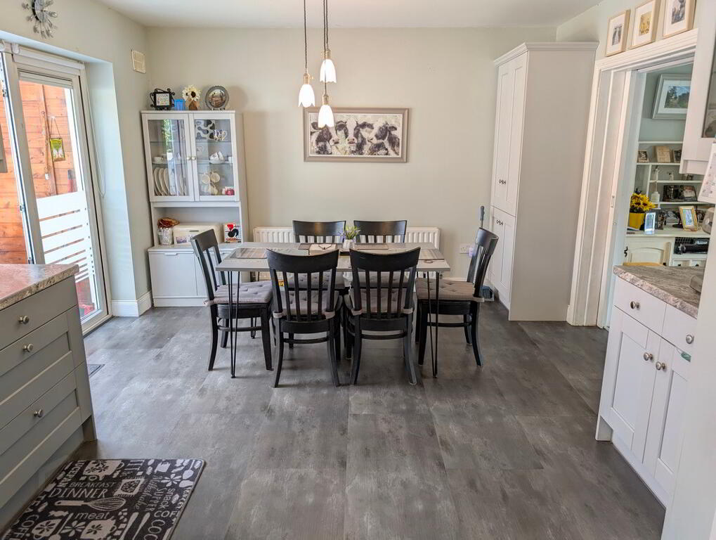 Kitchen/Diner (3.7 x 6.1) with integrated appliances & patio doors to covered rear patio & garden.