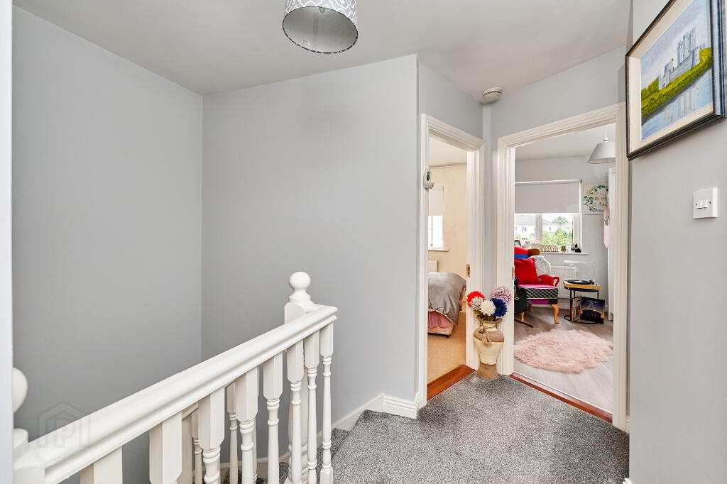 Carpeted staircase guides to first floor landing, turning left one finds two spacious double rooms, one of which is currently being utilised as a walk-in wardrobe and dressing room, the master bedroom has the added benefit of being en suite, and a shared family bathroom and hot press completes the accommodation.