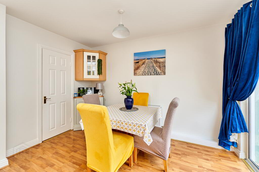 Hallway continues past downstairs WC and into a the heart of the home, a spacious, open plan kitchen diner with the added benefit of having a separate utility come laundry room leading off the dining area. Sliding patio doors give way back garden space.