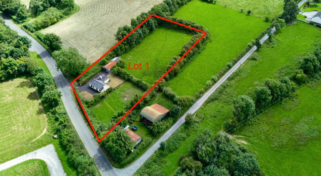 Available in one lot as an entirety, or two lots split between Lot 1 comprising residential property on c.1 acre or Lot Two comprising c. 2 acres with site potential and farm buildings.