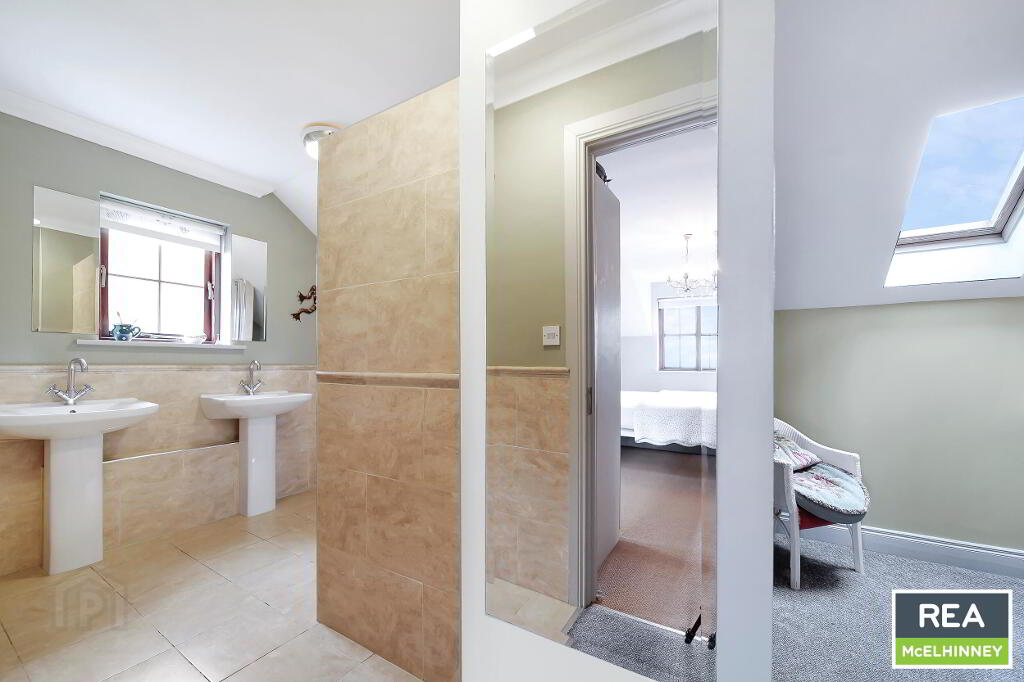 3.20m x 3.20m Bath, Shower, W.C., two W.H.B, tiled floor, tiled walls