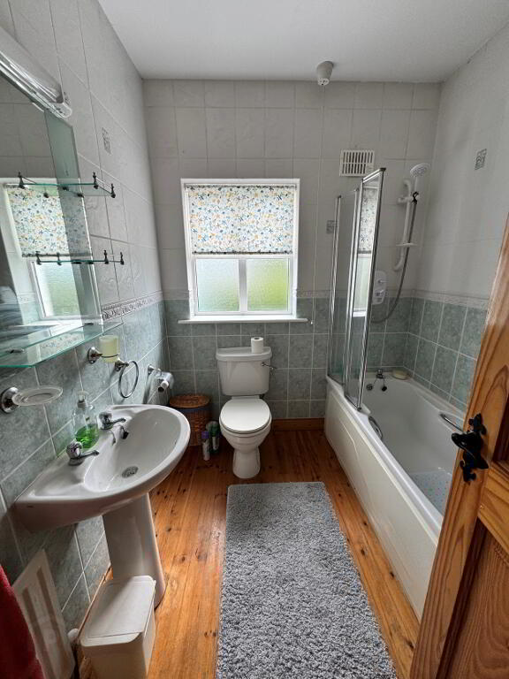 Main Bathroom: (2.4m x 2m) Wooden floor, bath, Electric shower, whb, wc