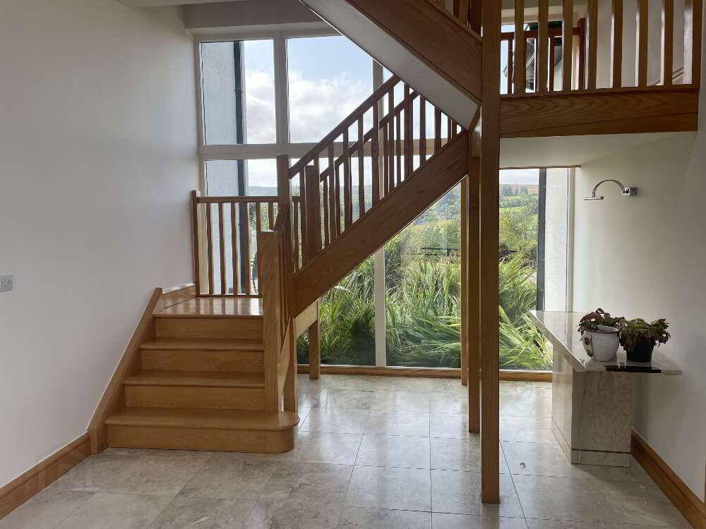 4.50m x 3.40m Tiled floor, feature timber staircase with large picture windows overlooking the surrounding panorama.