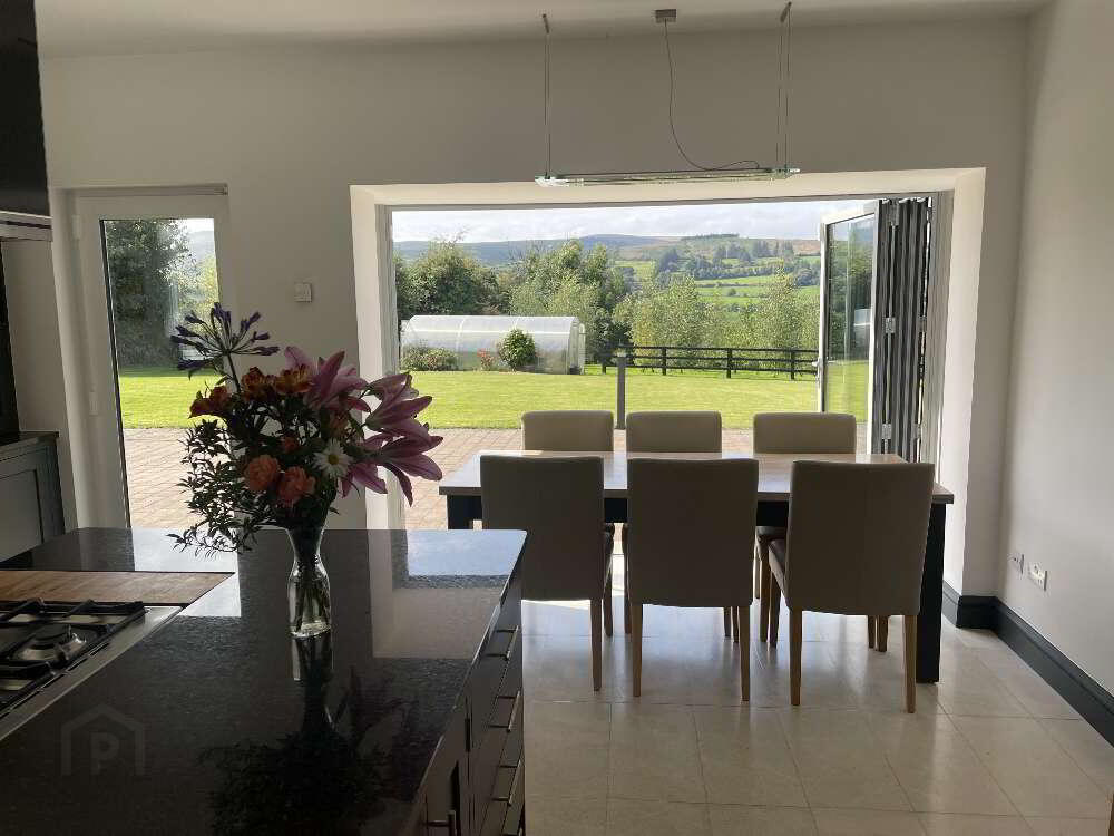 REA Spratt in conjunction with joint Agents REA Stokes and Quirke offer for sale this impressive Architecturally designed 4 bedroom home nestled on an elevated site and commands glorious views over the surrounding Nire Valley. Stepping into this impeccably presented home one cannot fail but be impressed with the high specification finish and décor throughout. This home has a wonderful sense of warmth and style and abounds with many attractive features that will impress the most discerning purchaser and which can be appreciated on viewing. The design of this contemporary home has been meticulously crafted, with a strong emphasis placed on bright, well-proportioned accommodation and energy efficiency providing for a fabulous family home. The thoughtful design carries through to the outdoor recreational area, which boasts striking expansive patio ideal for relaxation or entertainment. This home enjoys total privacy surrounded by mature hedging and trees and is approached via a driveway bordered by meticulously landscaped gardens leading to generous cobblelock driveway offering ample car parking. In addition the property boasts a large detached garage/workshop (fitted with car lift) plus 3 stable units perfect for the adjoining 3 paddocks fenced and railed. The property is within 8 km of Ballymacarbry Village, 18km of Clonmel and 30km Dungarvan towns. The bright spacious accommodation extending to 200 sqm comprises Entrance Hallway, Sittingroom, Inner Hallway, Livingroom, Bedroom/Playroom, Kitchen/Breakfast area, Utility, Guest WC, First Floor: Gallery Landing, 3 Bedrooms (Master Ensuite) Bathroom. External: Garage/Workshop, 3 Stables, Polytunnel. This home is brimming with features too numerous to mention but one will discover through a personal inspection. REA Spratt in conjunction with joint Agents REA Stokes and Quirke highly recommend viewing of this exceptional home.