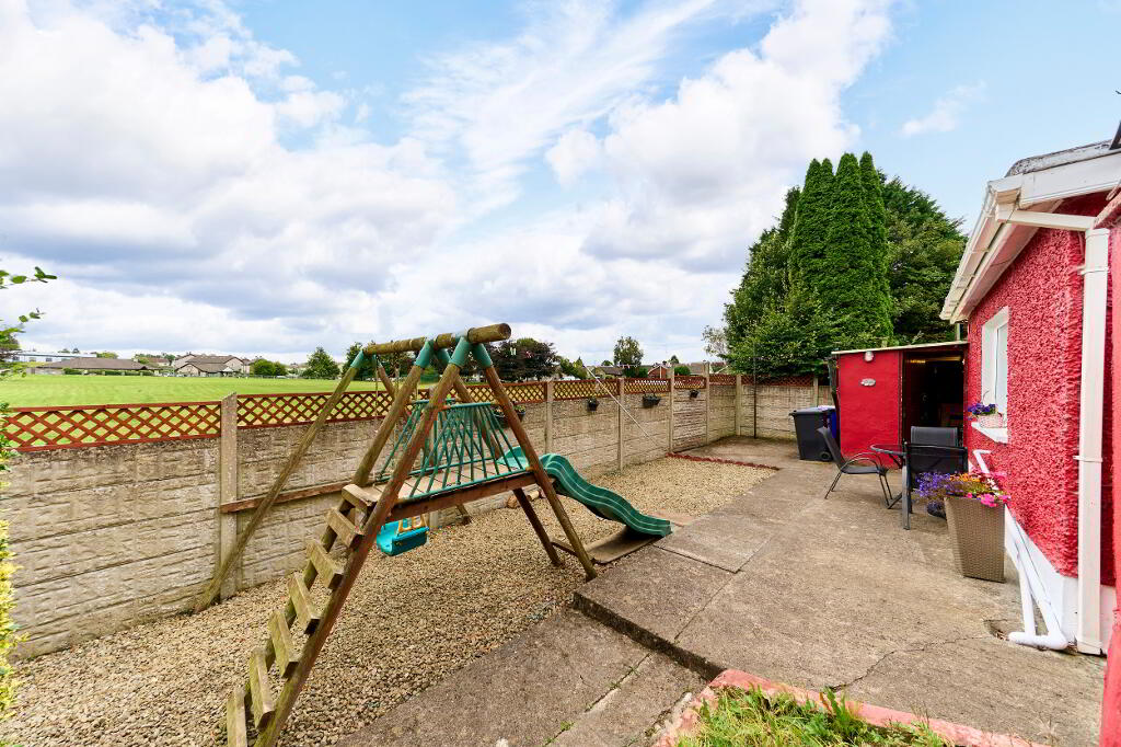 Stepping outside via utility room back door, a patio space gives way to gravelled play area with further garden shed, the back garden is completely enclosed giving both privacy and security.