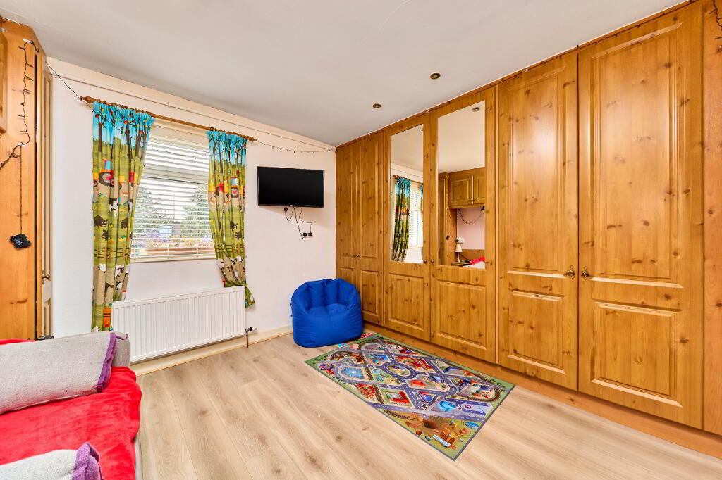 The third, and largest in terms of area, bedroom is currently being utilised as a children’s playroom, but retains its built in wardrobes should one require three beds, alternatively one could reinstate it as bedroom and dedicate the smaller of the bedrooms to a WFH office space if required.