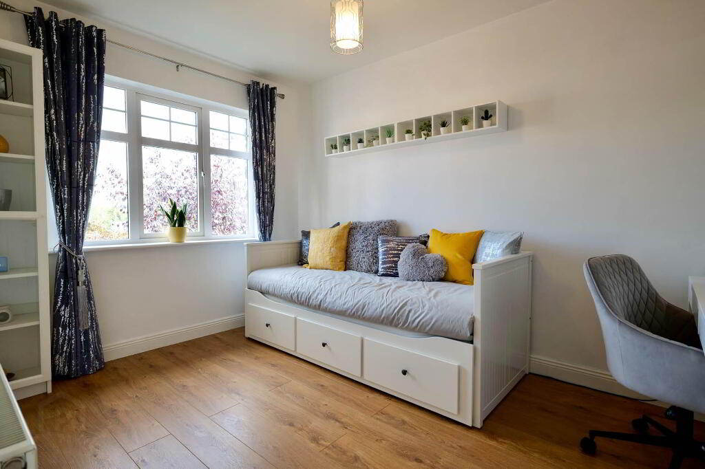 Occupying a generous corner site with a South-West facing rear garden, this home offers privacy, excellent natural light, and superb outdoor space perfect for relaxing or entertaining. There is also plenty of potential to extend (SPP) given the sizable plot. To the front, the property enjoys a tarmacadam driveway with parking for two cars, wide gated side entrance. To the rear, there is a private enclosed large rear garden not overlooked with decking area and garden shed.