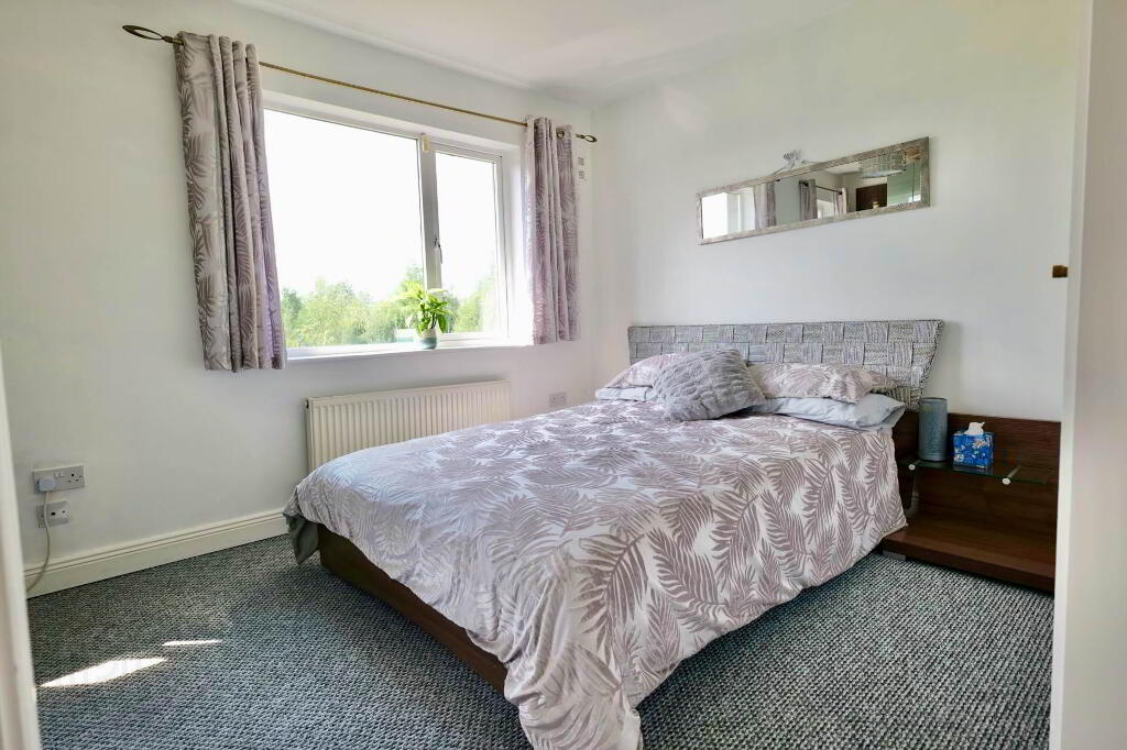 Double room with built in wardrobe & shelving, carpet and ensuite