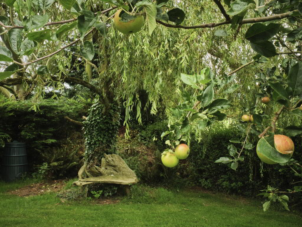 Large rear lawns and fruit trees.