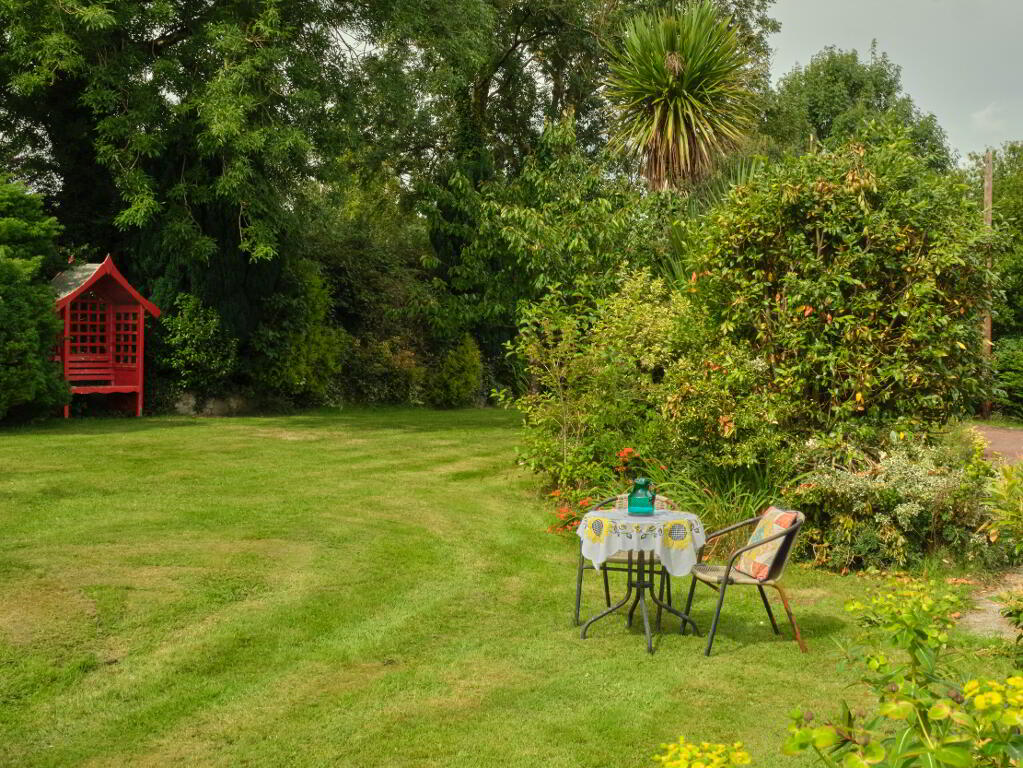 Tree-lined mature boundaries and spacious parking area.