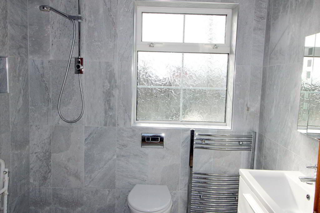 On the 1st floor there are 3 double bedrooms, all with built in wardrobes, the main bedroom has an en suite. Fully tiled family shower room with heated towel rail. Double Glazed windows, Oil fired central heating. Low maintenance, south facing garden to rear. The converted shed to rear, lends itself to any number of uses, a home office, gym, studio or playroom.