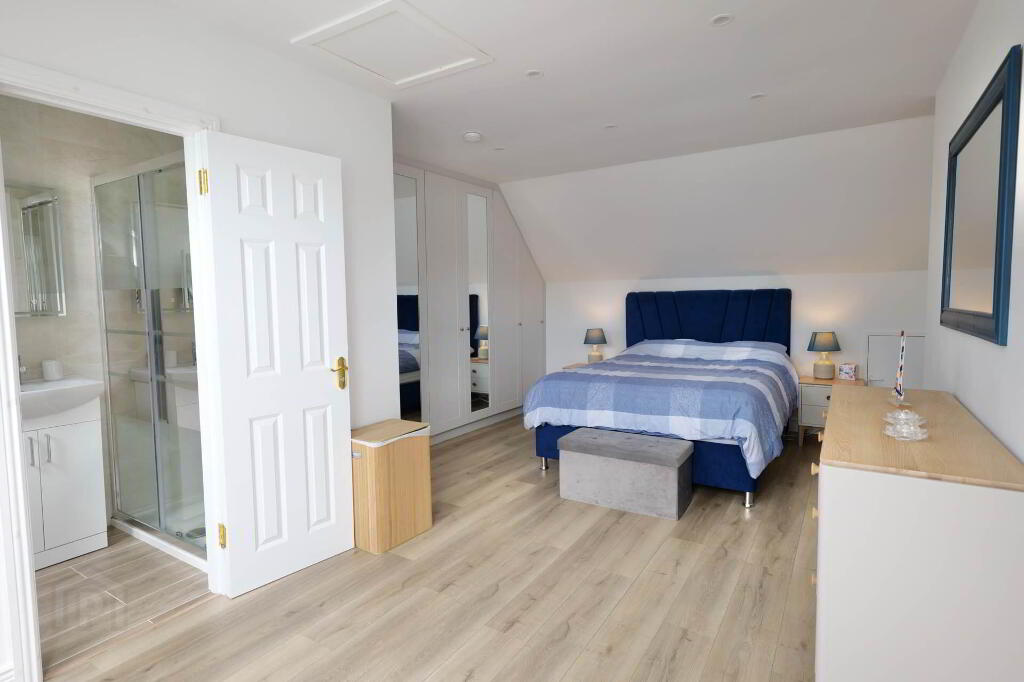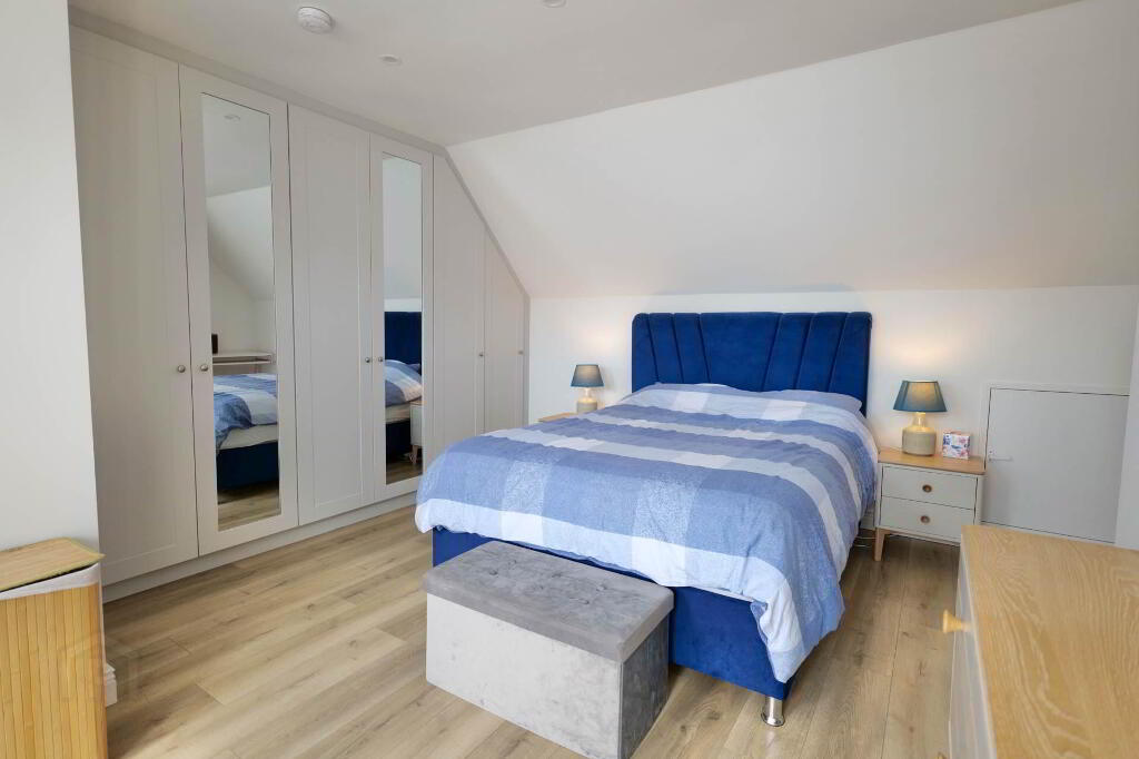 Built in wardrobes, Storage in alcoves, Velux windows, Recess lighting, Timber floor