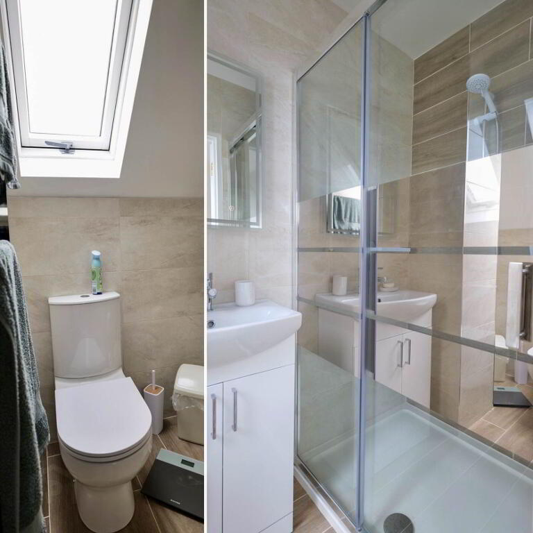 WC, WHB with under sink storage, Electric Shower, Fully tiled