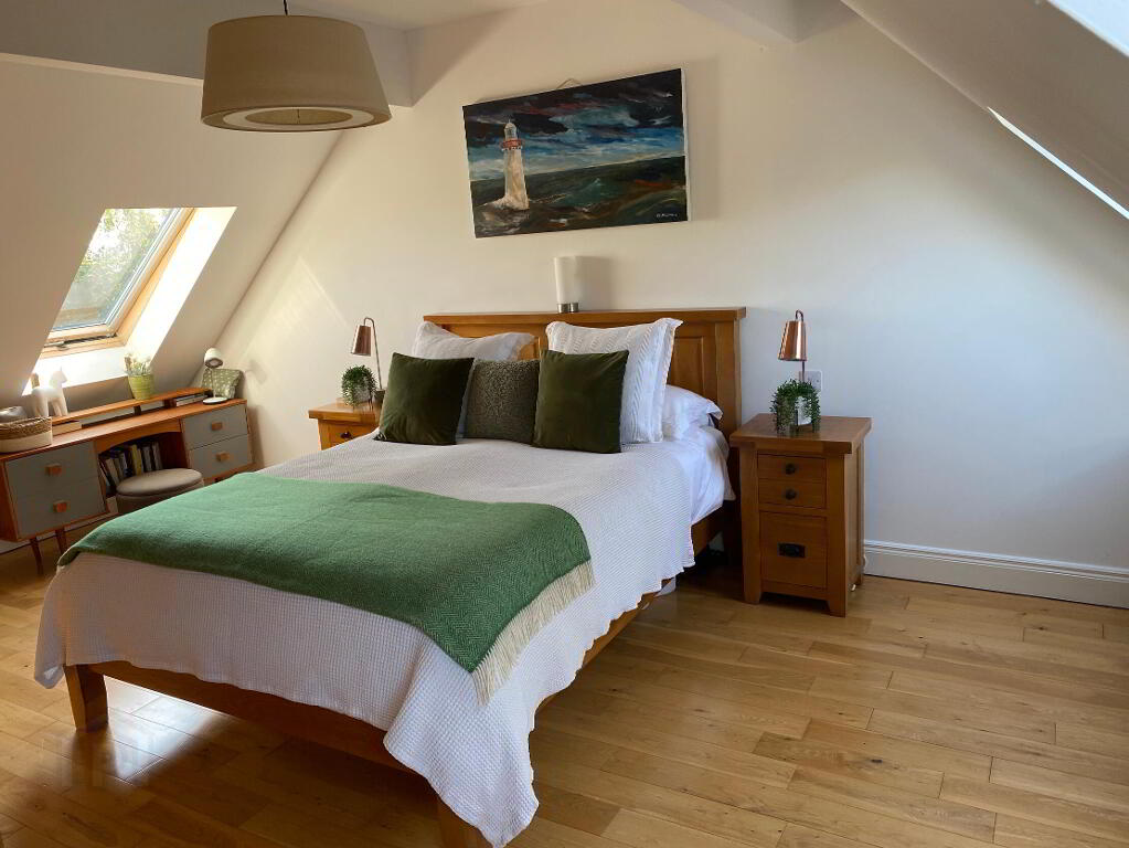 5.66m x 5.83m Solid oak flooring, extensive range of built in wardrobes and storage, walk in wardrobe off, velux windows, stunning views over Dungarvan Bay