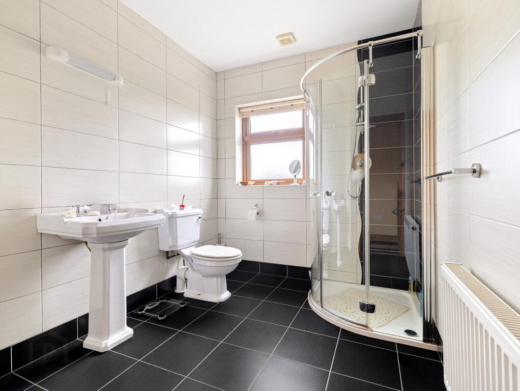 Family Bathroom: 3.3m x 2.1m, fully tiled with wc, whb & shower.