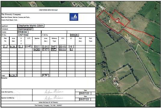 10.16Ha of the holding was planted in 2013 with predominately Oak species and an additional 4.34Ha planted in 2015 with predominately Sitka Spruce species. (10.16Ha). Located at an elevation of c. 200 meters, the plantations are performing well and well managed. Premiums are payable on both plantations for the remainder of the Contract period.