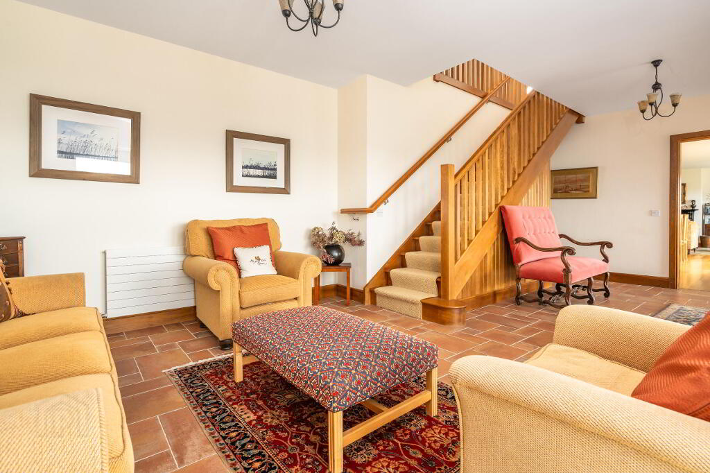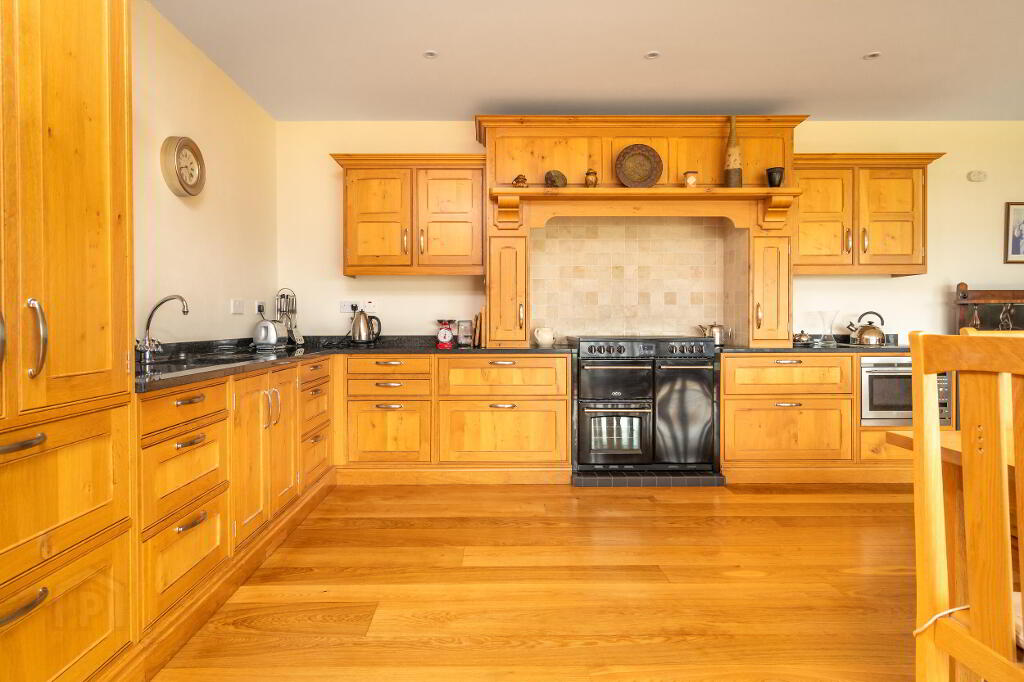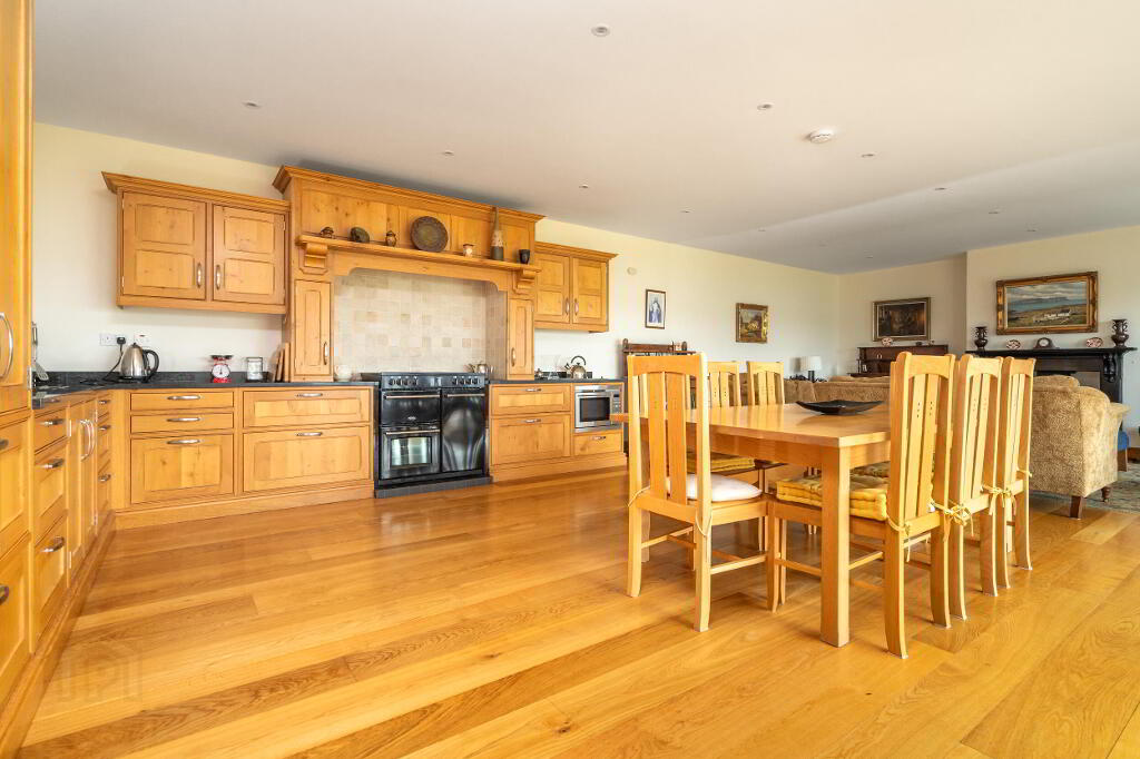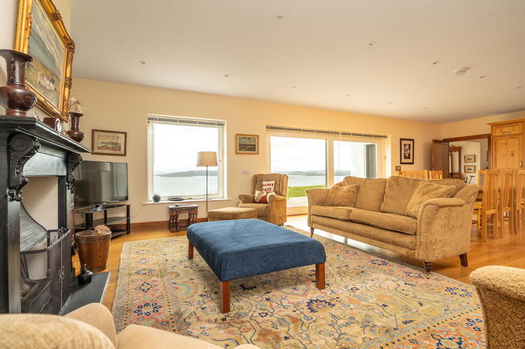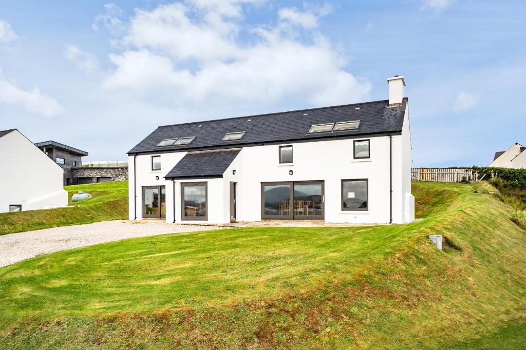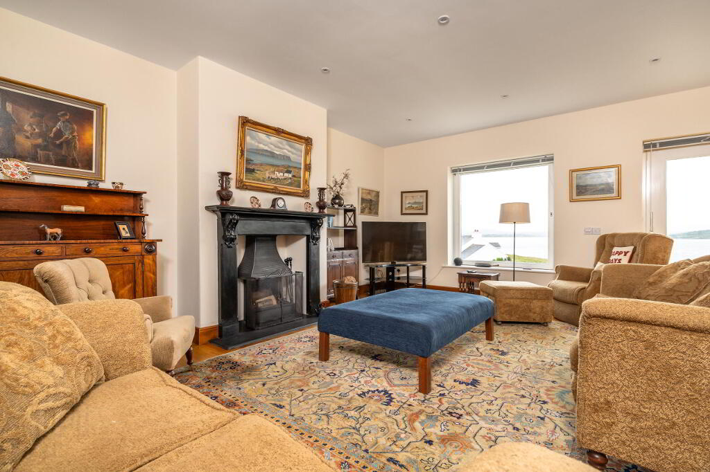 On arrival, the entrance hall creates a welcoming first impression, leading into a bright and spacious lounge with views to the front garden and the sea view beyond. The centerpiece of the home is the open-plan sitting, dining, and kitchen area which is perfect for both family living and entertaining, and benefits from a feature fireplace and doors opening directly to the patio and itâ??s panoramic views. The kitchen is fitted with sleek cabinetry and offers ample space for family dining, while the adjoining living area is filled with natural light benefitting from a southerly aspect. Accessed off the lounge is a WC, a utility room which provides practicality and gives access to an integral garage for storage. The bedroom accommodation is located on the first floor and includes a superb master bedroom suite. Two further double bedrooms complete the layout, alongside a well-appointed family bathroom and additional storage. Joint Agent's with REA McElhinney, Milford, Co. Donegal & Savills, 33 Molesworth Street, Dublin 2