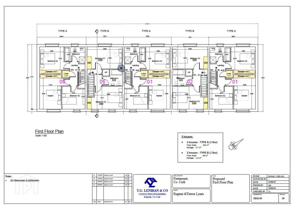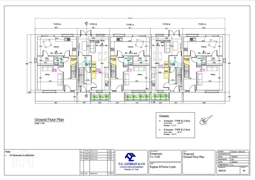 2 no. x 2 bed houses & 3 no. x 3 bedroom houses