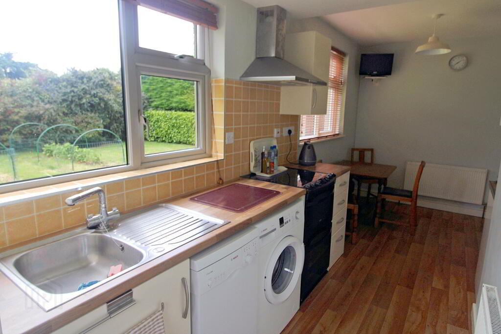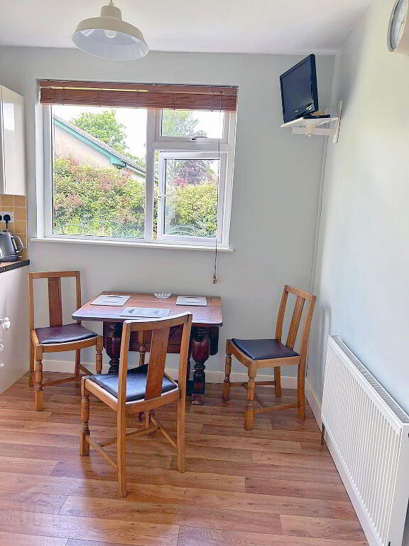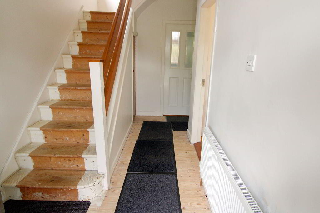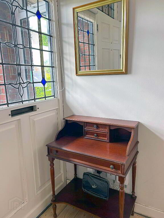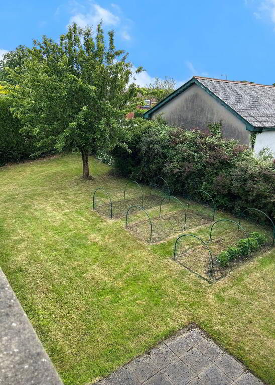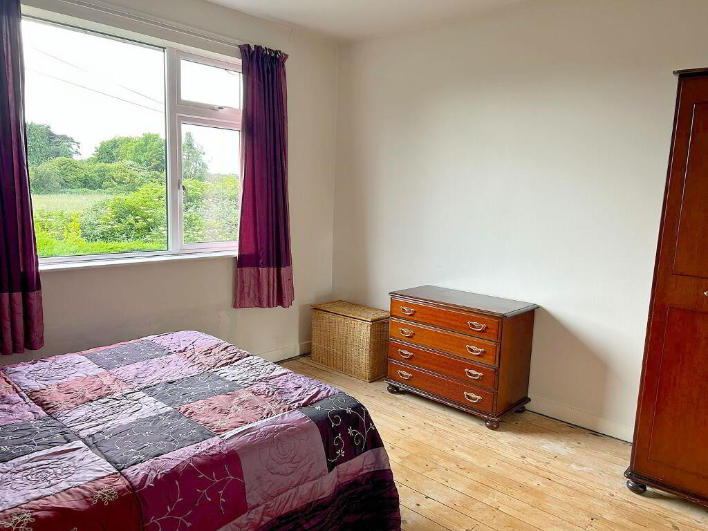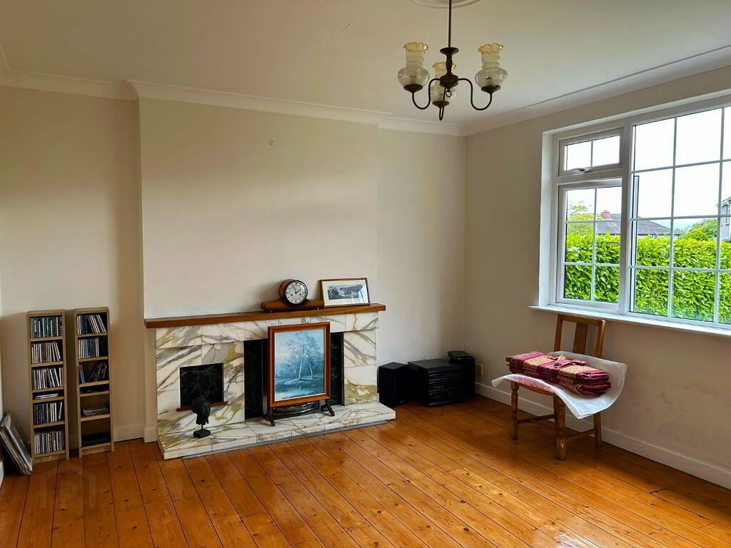 Accommodation Includes: Welcoming entrance hall with wood flooring, bright sitting room featuring a fireplace and wooden floors, spacious living room with patio doors opening to the rear garden, kitchen/dining room, three well-proportioned bedrooms upstairs, all with wood flooring, main bedroom includes built-in wardrobes, family bathroom. Oil-fired central heating & double-glazed windows. Attached garage offering additional storage or conversion potential