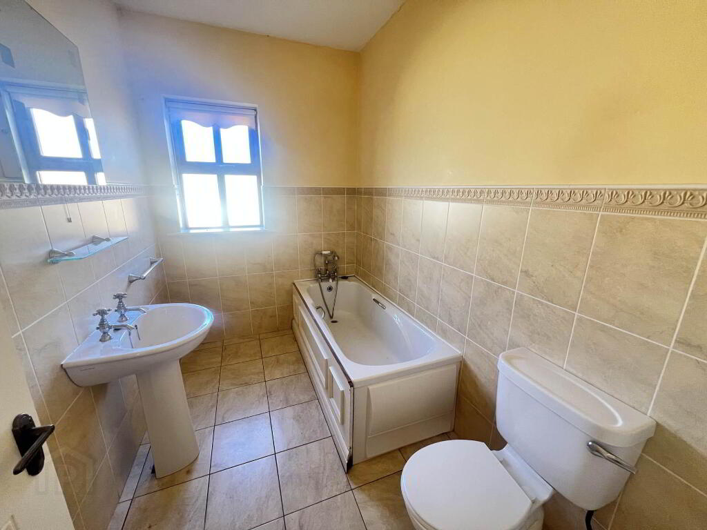 Bathroom - 3.3m (10'10") x 1.7m (5'7") Tiled floor with matching bath, WC and WHB.