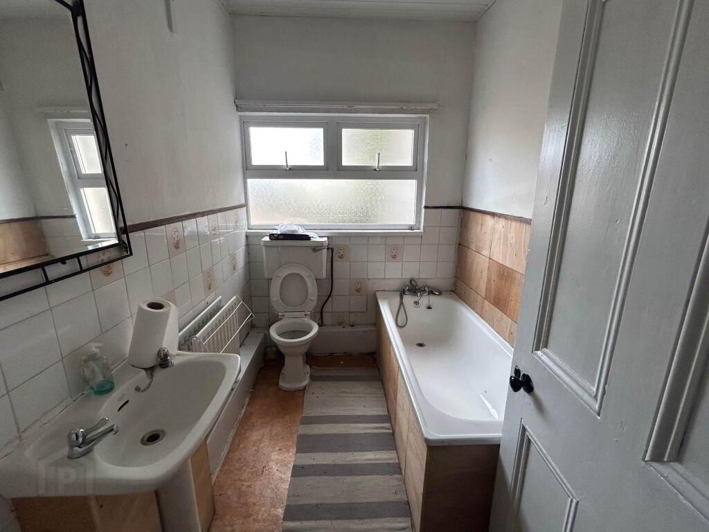 2.5m x 1.8m Bath, WC, WHB, radiator