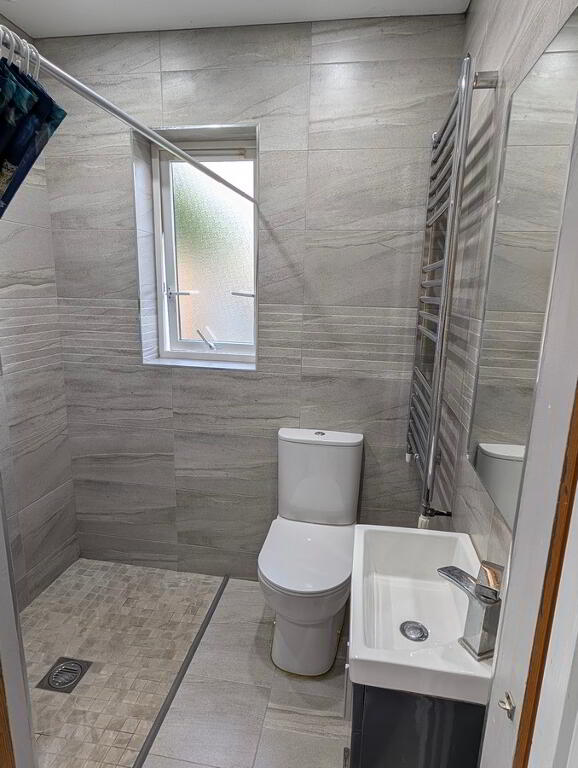 Utility Room (2.1 x 1.9) with sliding door to Shower Room (1.9 x 1.5).