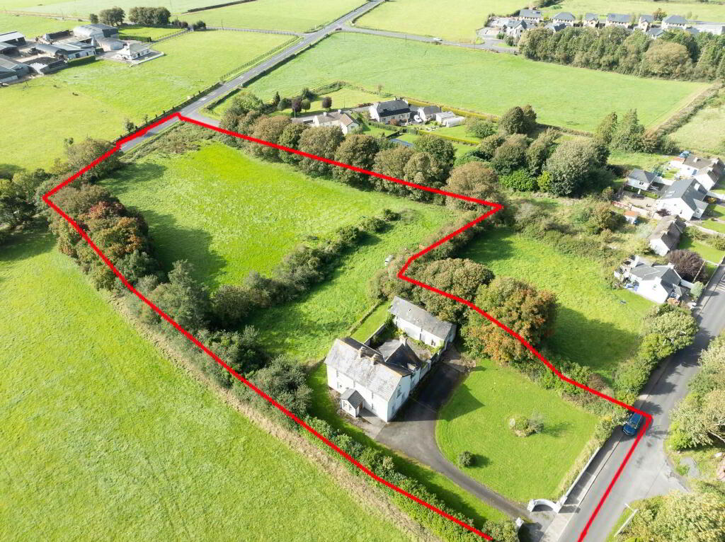 REA Dooley Group are delighted to present to the market this impressive 4-bedroom detached residence, set on approximately 2.8 acres with excellent potential for future development. Boasting 3m high ceilings, this home offers an open, airy atmosphere with superb natural light throughout. The property is further enhanced by 4 spacious bedrooms, including master ensuite, 2 reception rooms with feature marble fireplaces and stove inserts, kitchen/dining area with Aga range, fitted units, and tiled finishes, utility room with built in storage, plumbed for washer/dryer, guest WC and shower room, mature gardens with trees and shrubbery, a large garage/workshop, tarmac driveway, oil fired central heating, and full alarm system.
