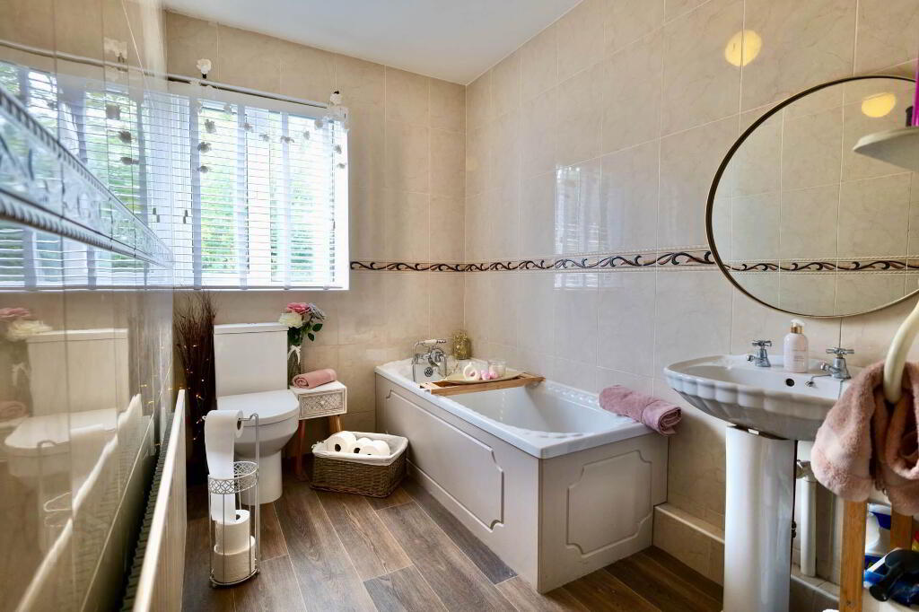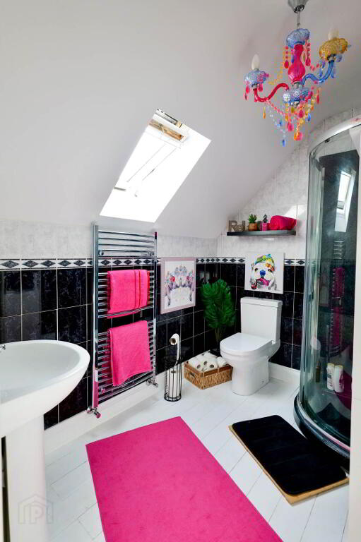 WC, WHB, Electric Shower, Heated towel rail, Velux window, Tiled wall and Timber floor