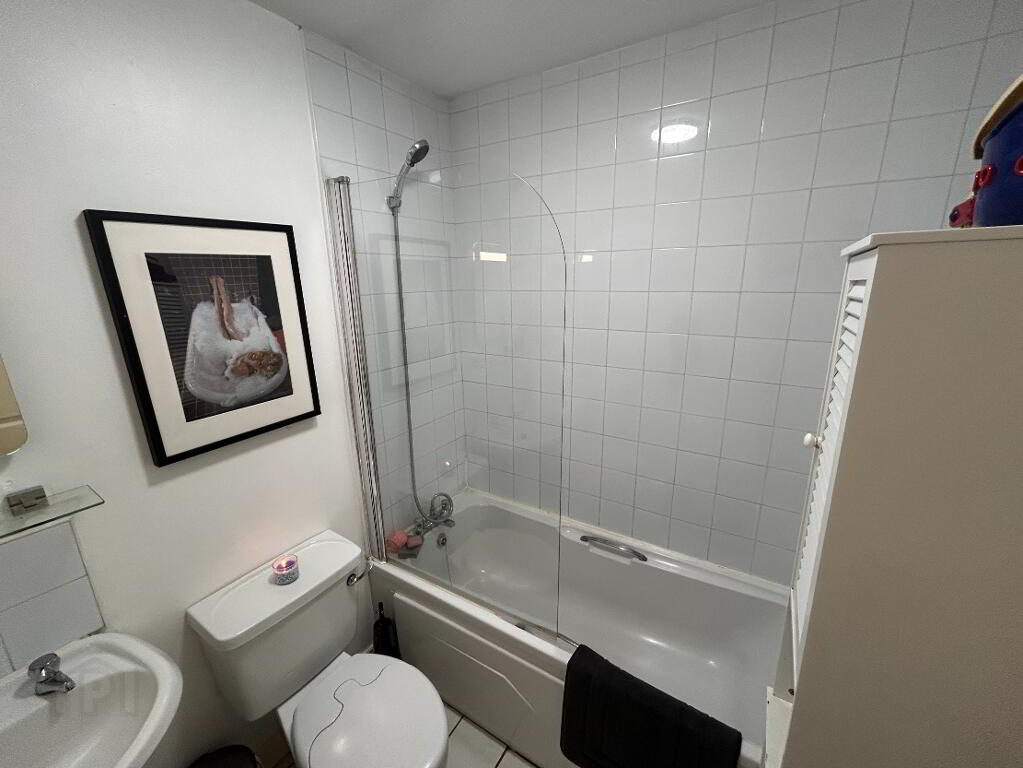 Bathroom: 2.01m x 1.72m; shower over bath, wc, & whb partially tiled.