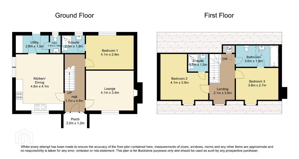 Bedroom 1 (4.1 x 2.9) with En-suite (2.0 x 1.5).