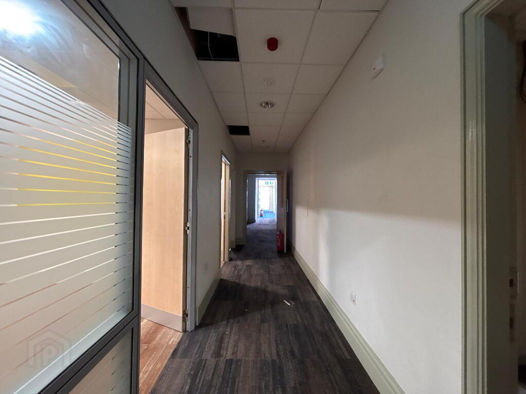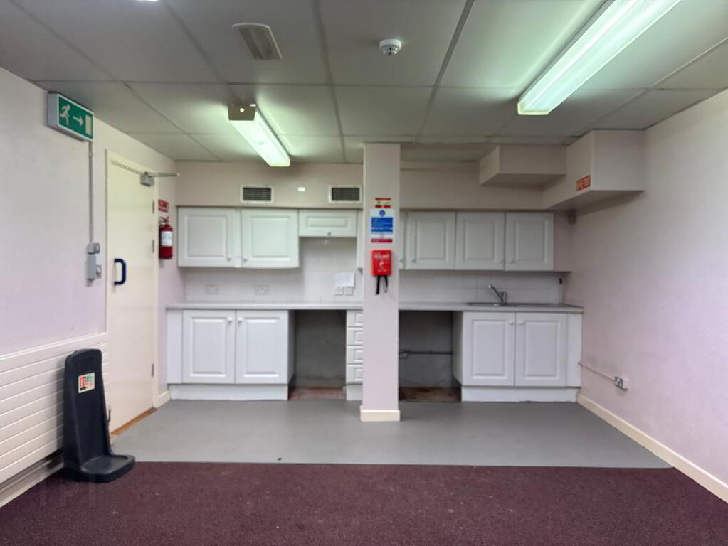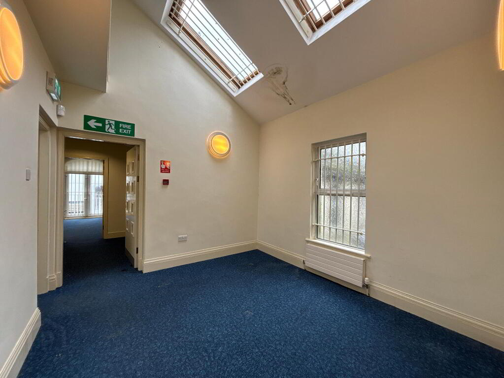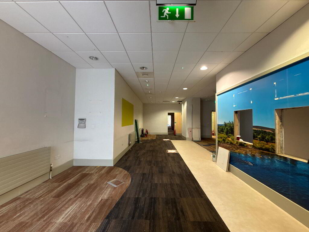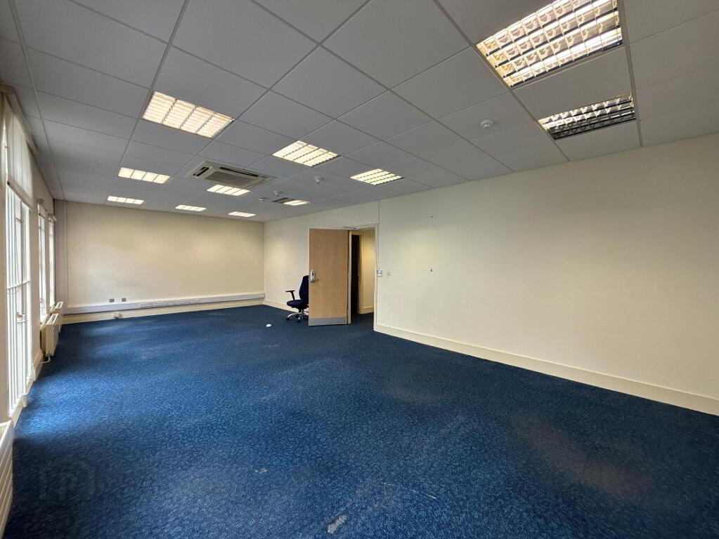 12.00m x 6.50m Large reception area with a mixture of carpet and laminate flooring.