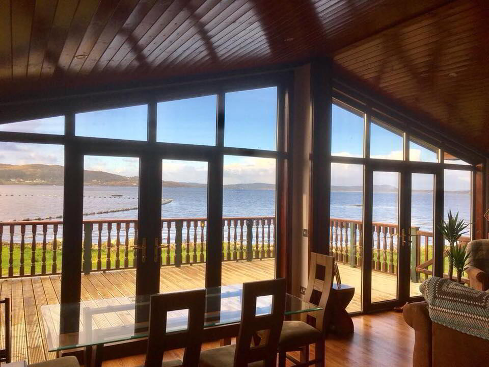 Proceeding into Kerrykeel from Milford, take the left into Mulroy Bay Resort. Go down the entrance lane and go past the reception on the right into the Cabin park. Follow the road down to the seafront and cabin is second last on the right.