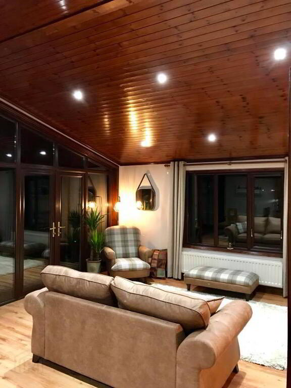 4.80m x 3.60m doors leading out to decking, sea views, pine painted ceiling, recessed lighting