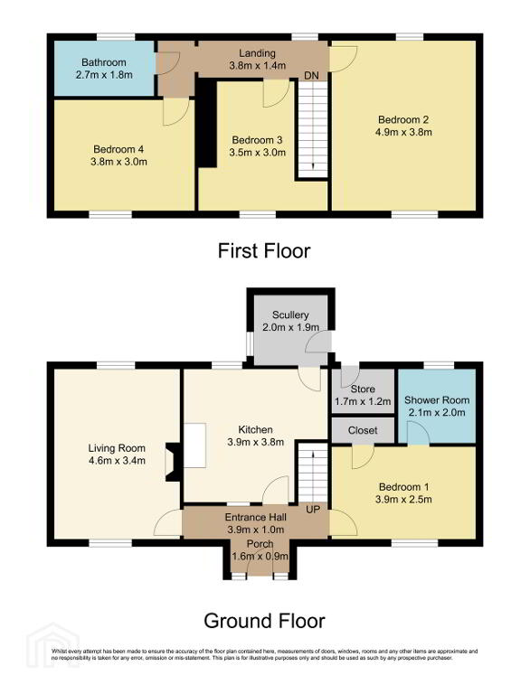 Porch area (1.6 x 0.9) open to Entrance hall (3.9 x 1.0)