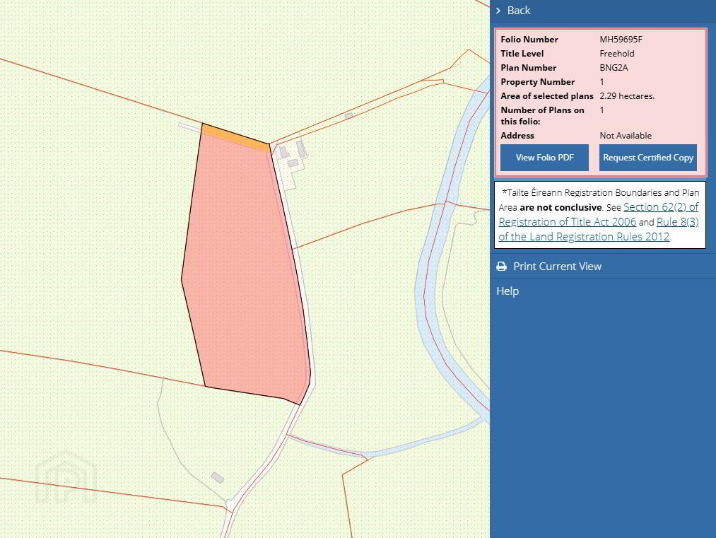The lands comprised in Folio MH59695F extend to approximately 5.65 acres statute measure and are presently under old pasture but are equally suited to any farming practices. Being laid out in one principal regular shaped division the lands lend themselves ideally suited to the erection of a residence subject to the necessary planning permission from Meath CoCo.