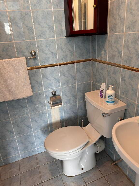 Bathroom: 2.05m x 1.67m: Fully tiled, bath, wc & whb.