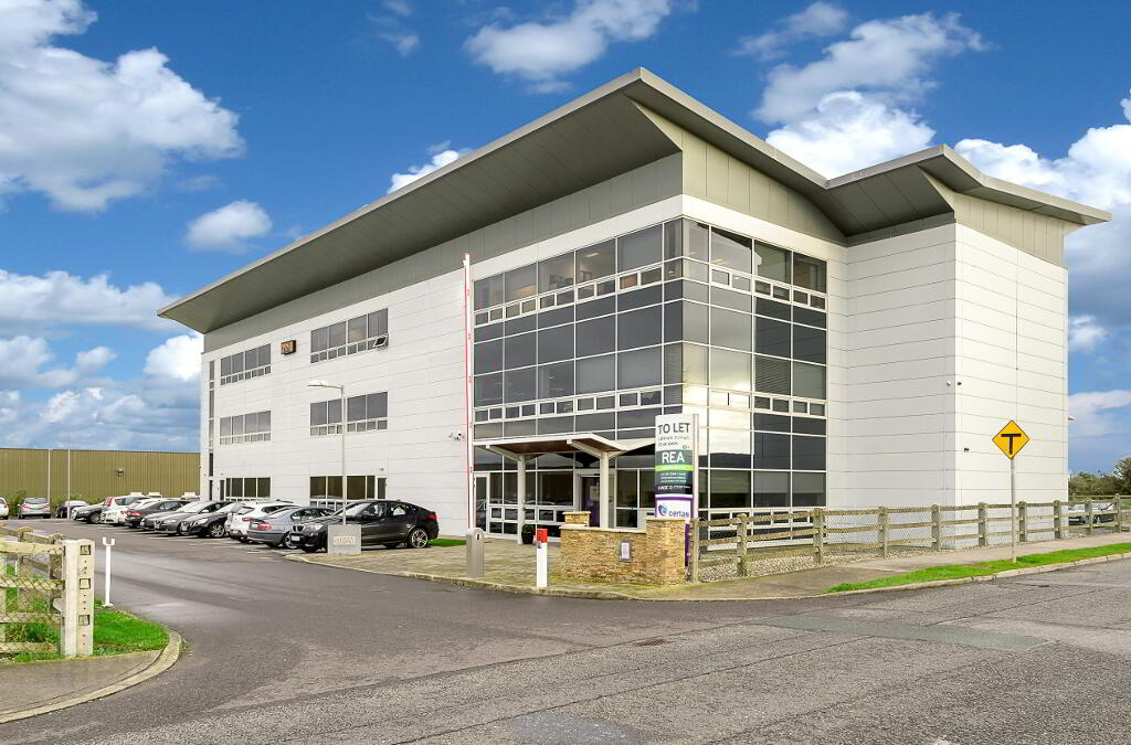 Knockbrack House is a modern, high-profile 3-storey office building occupying a prominent corner position between Drogheda town centre and the M1. The building features an impressive cantilevered roof, triple-height glazed western elevation, and excellent natural light throughout.