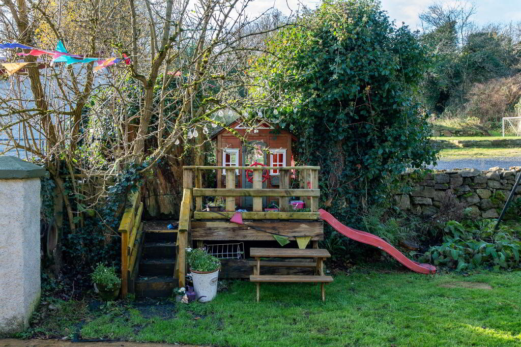 The outside space of this exceptional property is every bit as enchanting as the home itself, offering a rare blend of natural beauty, versatility, and rural charm. Set on c. 3.03 acres of completely chemical-free land, the grounds feature flourishing paddocks ideal for horses or small-scale farming, along with organically nurtured herb and plant gardens bursting with lemon balm, rosemary, mint, fennel, and more. A large cut-stone outbuilding with two stables provides superb facilities for equestrian use or creative workshop potential, while a 3-bay hay shed with generous lean-to and an additional detached outbuilding offer extensive storage or agricultural opportunities. Adding to the character of the holding, a derelict stone cottage invites the possibility of future restoration. With its rolling greenery, mature woodland backdrop, and abundance of natural growth, this outdoor haven creates a peaceful, productive, and deeply inspiring setting for country living.