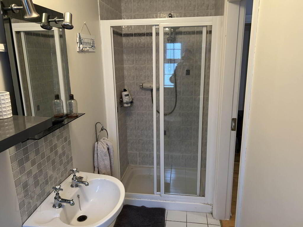 Tiled floor, Tiled electric shower unit, WC, WHB