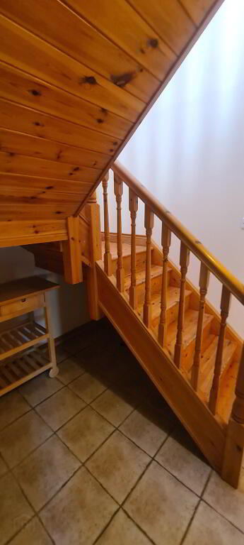 2.76m x 1.97m Inner hallway with tiled flooring, door to bathroom and downstairs bedroom, stairs leading to first floor