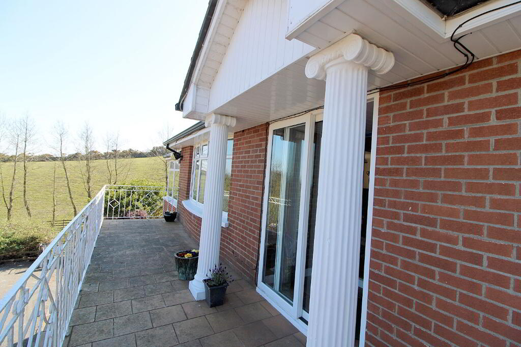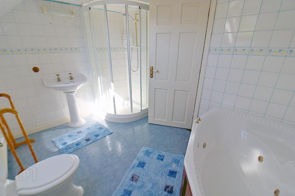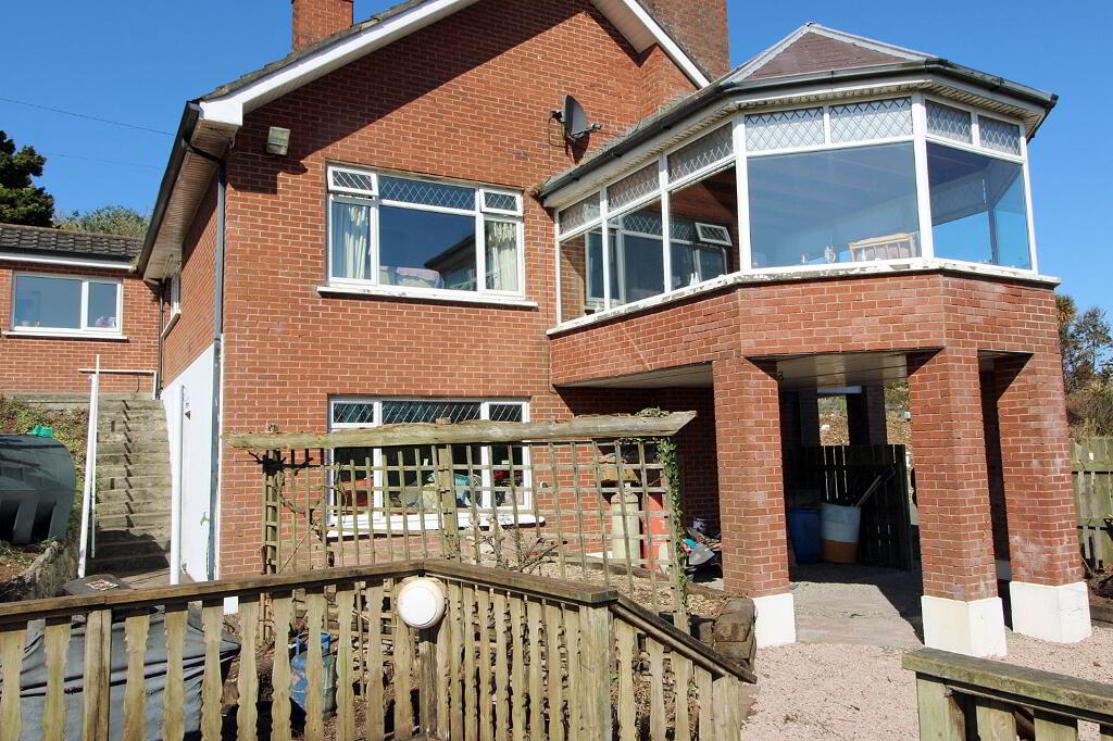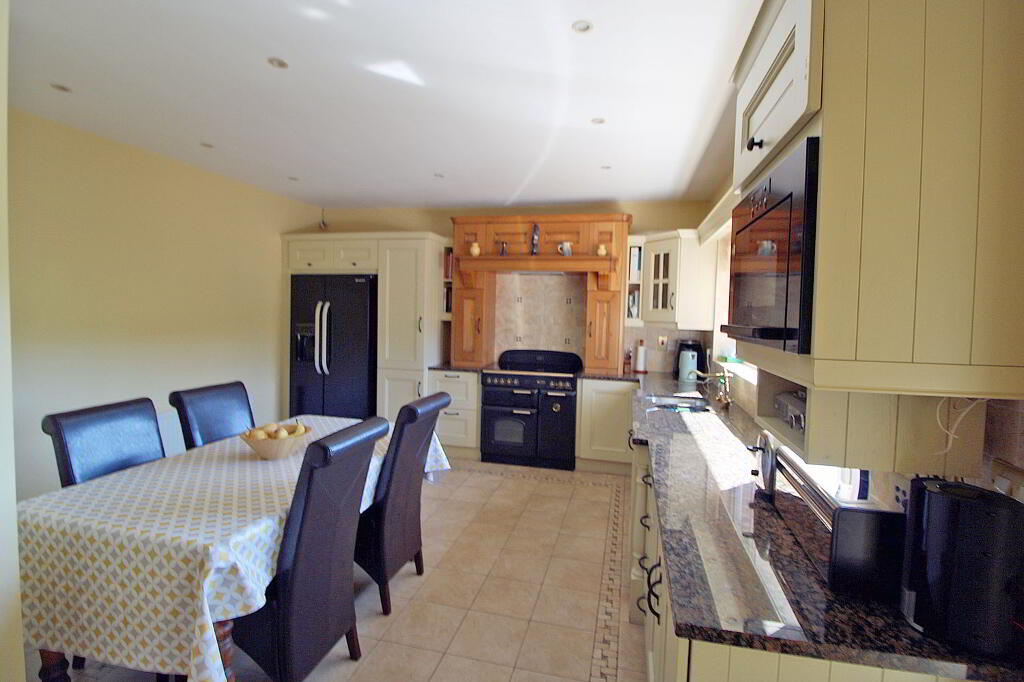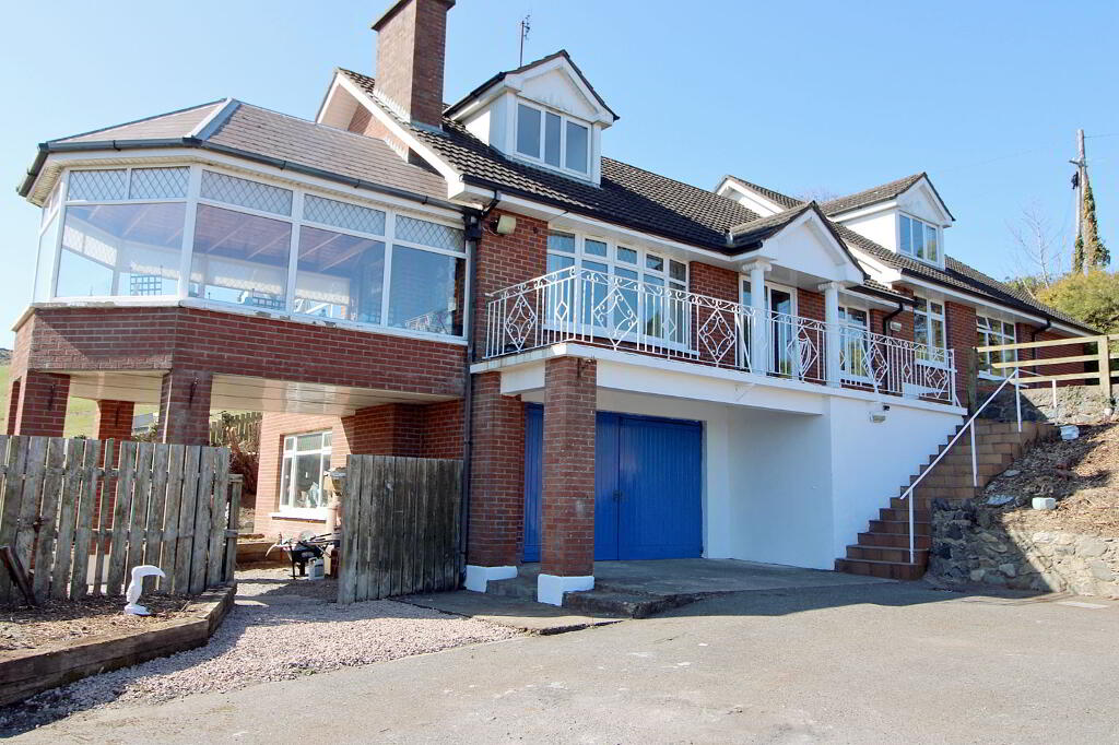 The layout comprises: A welcoming entrance hallway with ceramic tiled flooring, elegant sitting room with a feature fireplace and wood-burning stove, double doors lead into a standout feature of the home – a large, light-filled sunroom that extends outward like a pier on plinths, offering unmatched views of the landscape. spacious, country-style kitchen and dining area with beautifully crafted fitted units, separate utility room for added convenience. A few steps up from the hallway lead to three generously sized bedrooms, the master suite includes a bedroom, walk-in wardrobe, and a large en-suite shower room. A stylish family bathroom completes this level. Upstairs there are two versatile attic rooms a Guest WC and an additional full bathroom with shower unit & corner bath. At the lower level of the house is the Integrated garage and carport. Oil-fired central heating.