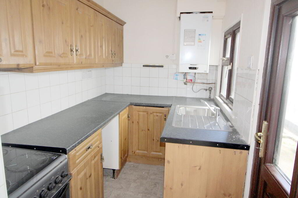 Accommodation comprises: living room, kitchen, upstairs there are two bedrooms and bathroom. Natural gas central heating. The attached sheds at the rear offer fantastic potential for conversion to significantly increase the living space, along with a small yard.