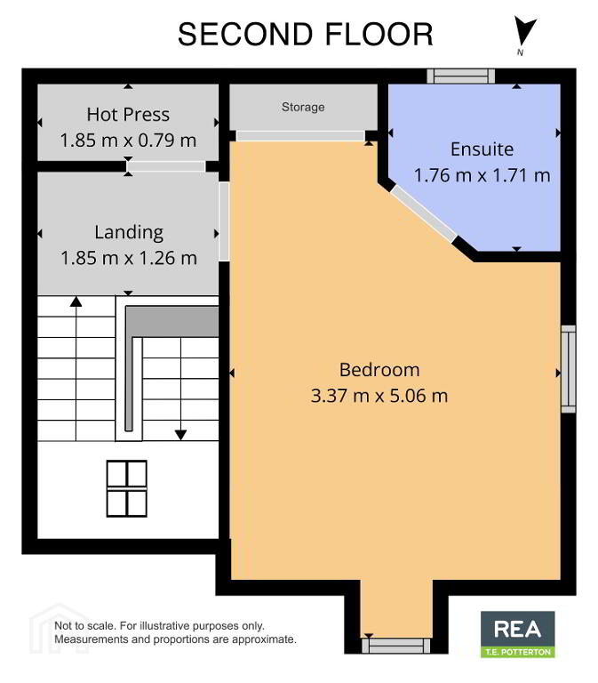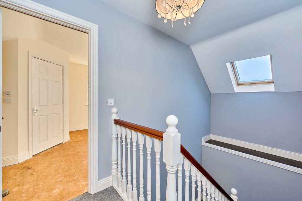 Up and up and up we go, the staircase continues to second floor landing containing the hot press and opens into your new master suite, which is currently a relatively blank canvas ready for your to create your own sensational space.