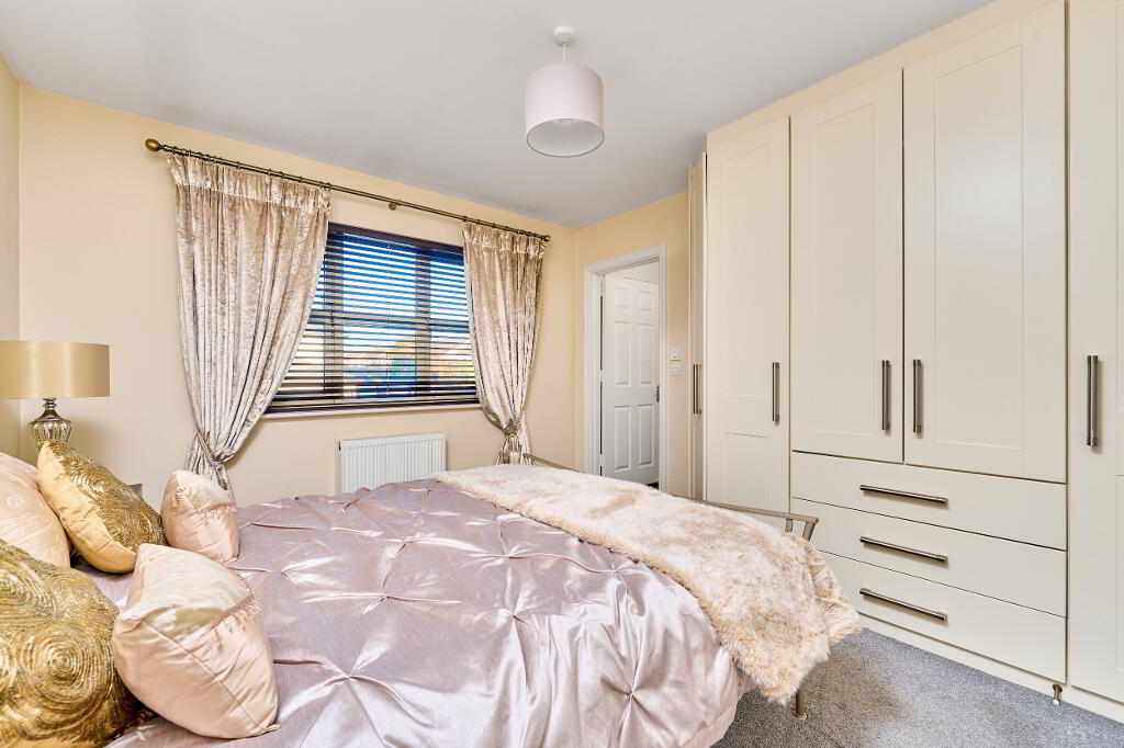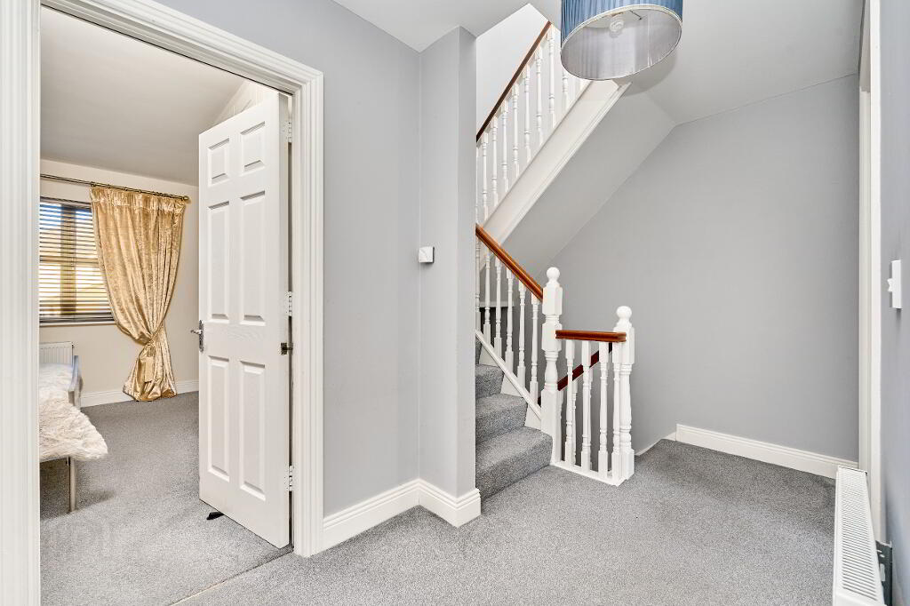 Carpeted stairs guide to first floor landing that gives way to three well appointed bedrooms, the largest of which benefitting from a generous en suite, and finishing with a shared family bathroom.