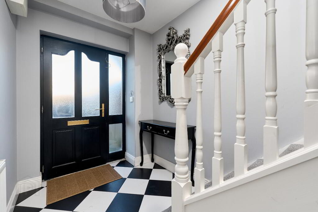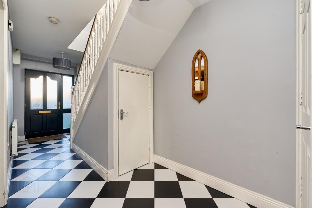 Stepping through your new front door a welcoming hallway greets you, with checkerboard tiles and ample space to create a wonderful understairs storage solution.