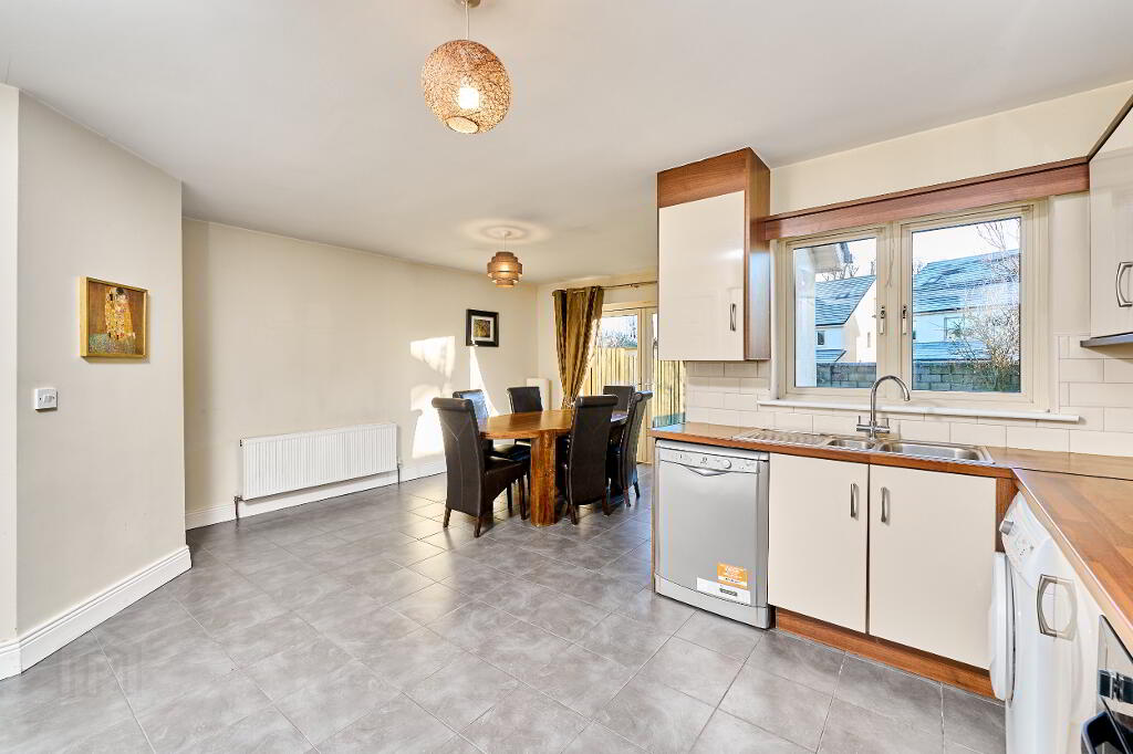 Continuing past downstairs WC the hall door gives way to large open plan kitchen dining area, with ample storage and worktop prep space, the hob is connected to mains gas making the kitchen a perfect space for the creative foodie in your life!