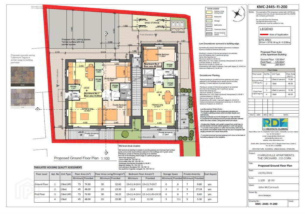 REA Dooley Group present this 0.035 ha / 0.09 acre site which has full planning permission for a development of 4 Apartments (270m2) comprising of 2 x 2 bed apartments - 74.90m2 each, 2 x 1 bed apartments - 48m2 each, 4 x private parking spaces in front of apartment block, bin storage, bike storage and green area.