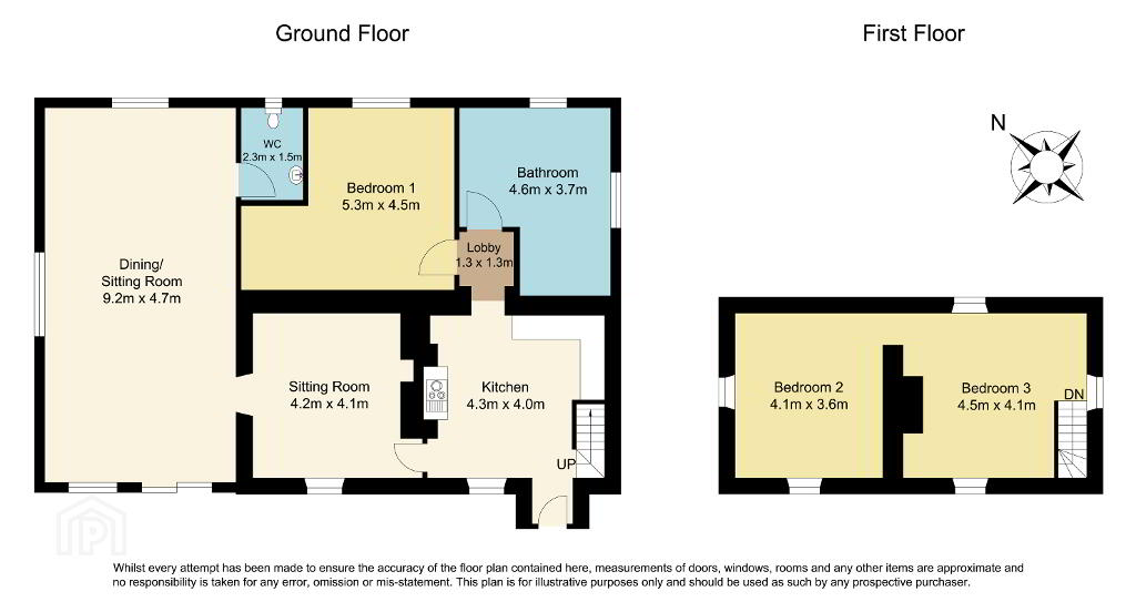 W. C. (2.3 x 1.5), Lobby (1.3 x 1.3)